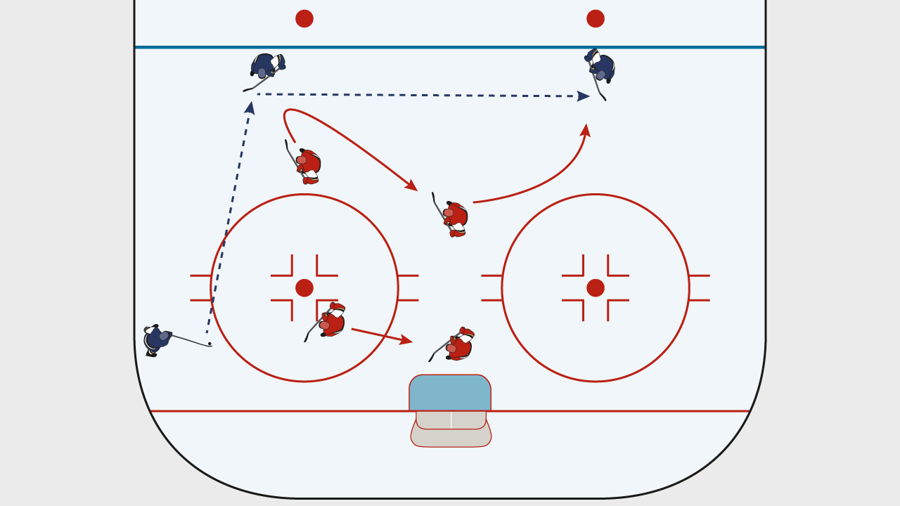 Ziel des Powerplays ist es, Chancen zu kreieren und den Torabschluss zu suchen. Spieler und Puck sollen immer in Bewegung sein und nicht statisch in ihrer Position verharren.